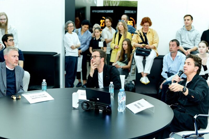 На фото: Александр Львовский, Александр Цимайло и Николай Ляшенко презентуют павильон на АРХ Москве 2024