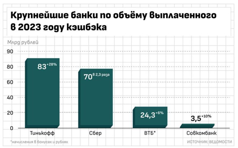 Тинькофф занял первое место по выплате кэшбэка клиентам среди отечественных банков. В сравнении с 2022 годом, прирост выплаченных в виде кэшбэка сумм составил 28%.