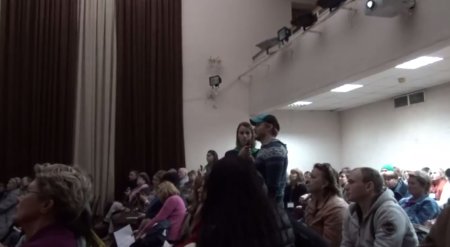 Итак, люди стали жаловаться в сети, что не могут попасть на обсуждение. Кто-то писал, что зал заполнили совершенно «левые» личности, при том, что местным жителям приходится тесниться в другом зале с плохой трансляцией происходящего.