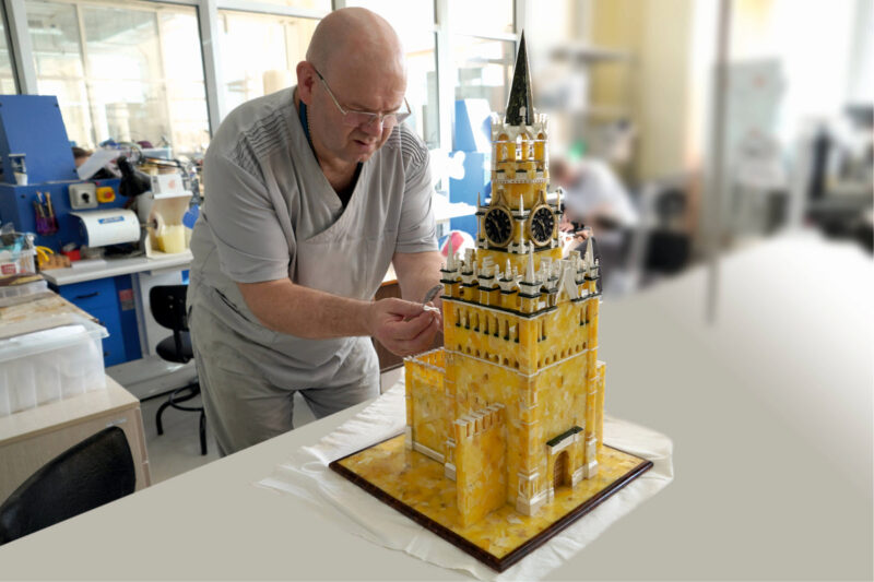 Янтарный комбинат создал Спасскую башню из 1500 кусочков солнечного камня