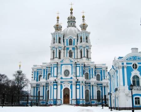 В настоящее время фасадные работы уже практически завершены, и Смольный собор снова предстает во всем своем великолепии.
