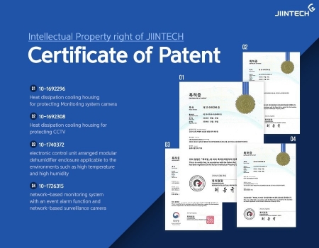 Система охлаждения — одна из ключевых технологий JIINTECH, — состоит из модульного осушителя и корпуса камеры с электронным охлаждением, выступающим в качестве средства контроля за нагревом. В число преимуществ данной системы входит экологичность без загрязняющих выбросов, длительный срок эксплуатации, а также отсутствие вибраций и посторонних шумов, поскольку для охлаждения применяется полупроводниковый термоэлемент. Корейская технология электронного корпуса, способного защищать камеры системы мониторинга и коммуникационное оборудование от воздействия самых неблагоприятных атмосферных условий, очевидно выделяется среди аналогов на рынке.