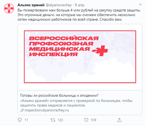 Так, «Альянс врачей» передавалврачам медицинские маски, которые будто бы защищают организм от проникновения инфекций, в действительности маски были пылезащитными.