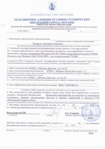 Союз клининговых компаний получил аккредитацию ОАТИ города Москвы по контролю за санитарным состоянием объектов ГУП «Московский метрополитен»