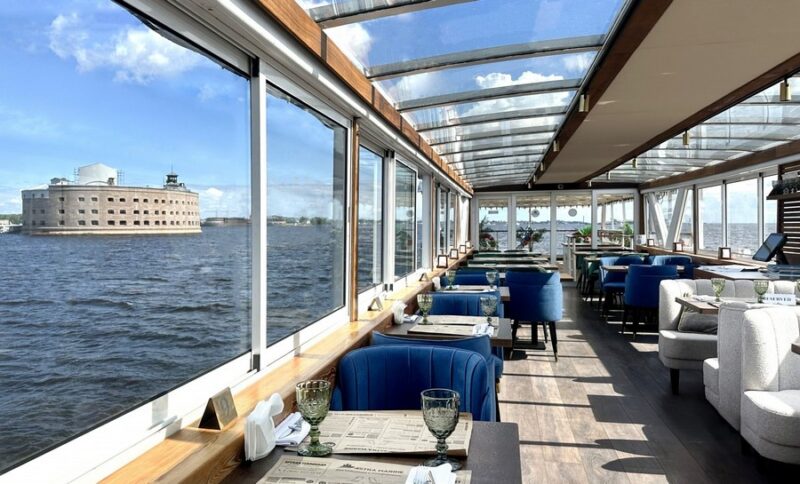 Первый регулярный круизный маршрут на теплоходе-ресторане запустила Группа компаний «Астра Марин». Путь проложен вдоль исторических фортов Кронштадта. Ежедневные рейсы отправляются каждый час с 12:30 до 17:30 от причала «Патриот» в Купеческой Гавани, напротив музея «Голландская кухня».