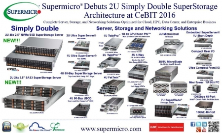 На CeBIT 2016 архитектуру хранения данных Simply Double U2 представила Supermicro®