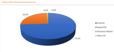 Наблюдается небольшой рост использования iOS, на которую теперь приходится почти четверть пользователей. Однако самой популярной мобильной ОС по-прежнему остается Android, и ей пользуются 74% участников.